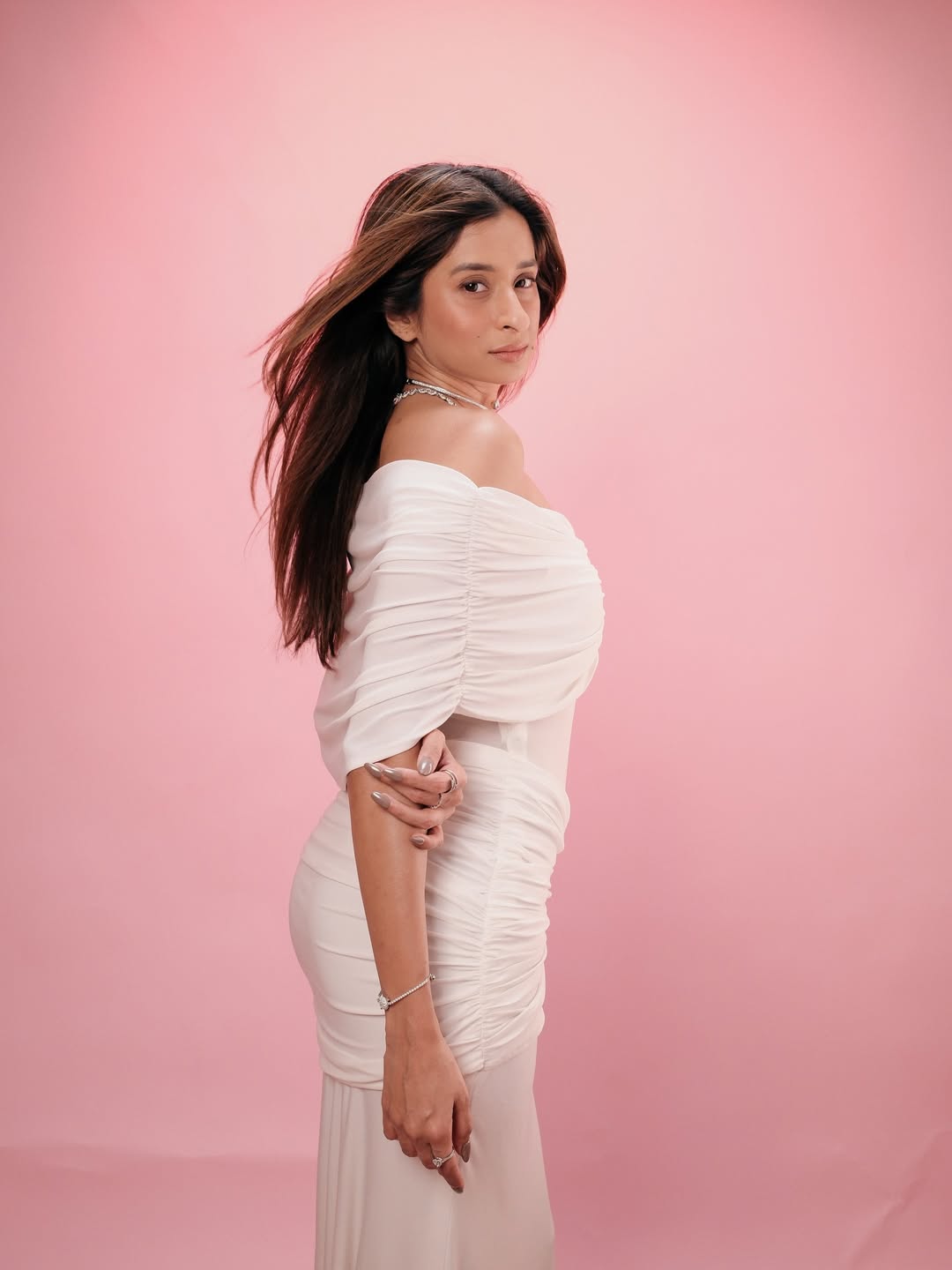 Unnati Malharkar rocks a ruched off?shoulder moment with smooth lines and a super?snatched vibe. (Image Courtesy: Unnati Malharkar Instagram)